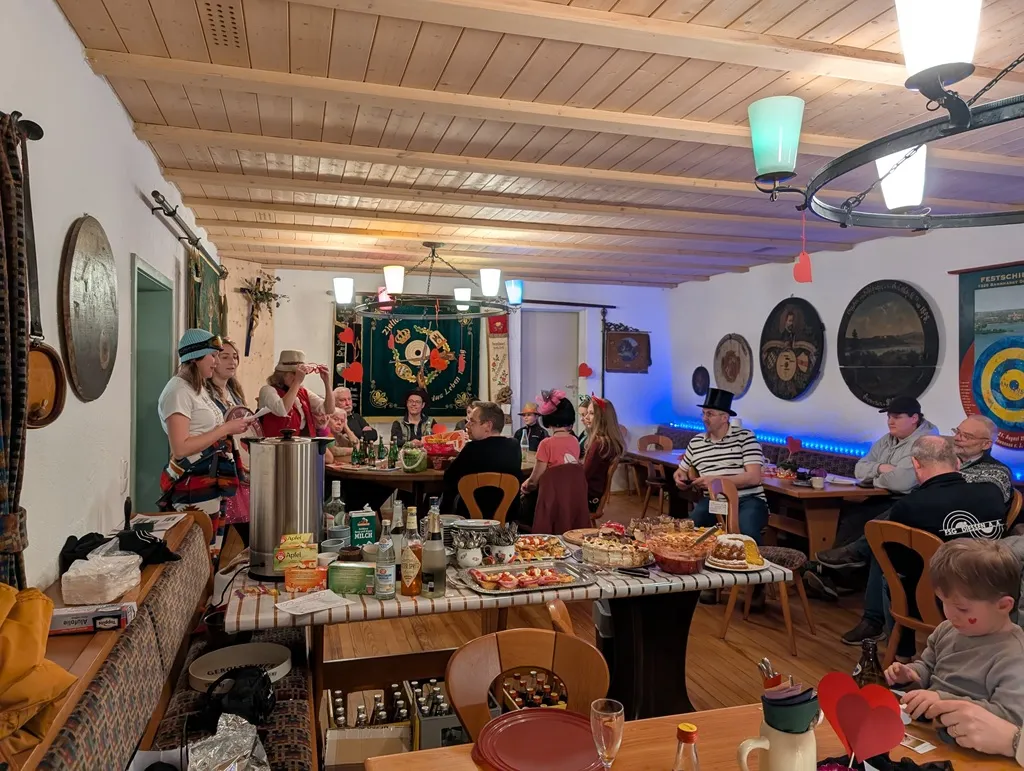 Neben den bunten Kostümen und Verkleidungen der Teilnehmer, sorgten fünf abwechslungsreiche Disziplinen und die musikalische Untermalung für eine fröhliche und ausgelassene Stimmung. Stärken konnte man sich während und nach dem Wettkampf bei Kaffee und Kuchen. Im Schützenstüberl fanden auch die Siegerehrungen und die Preisverleihung statt. Gewonnen hat dieses Jahr übrigens das vermeintlich schwächere Geschlecht.